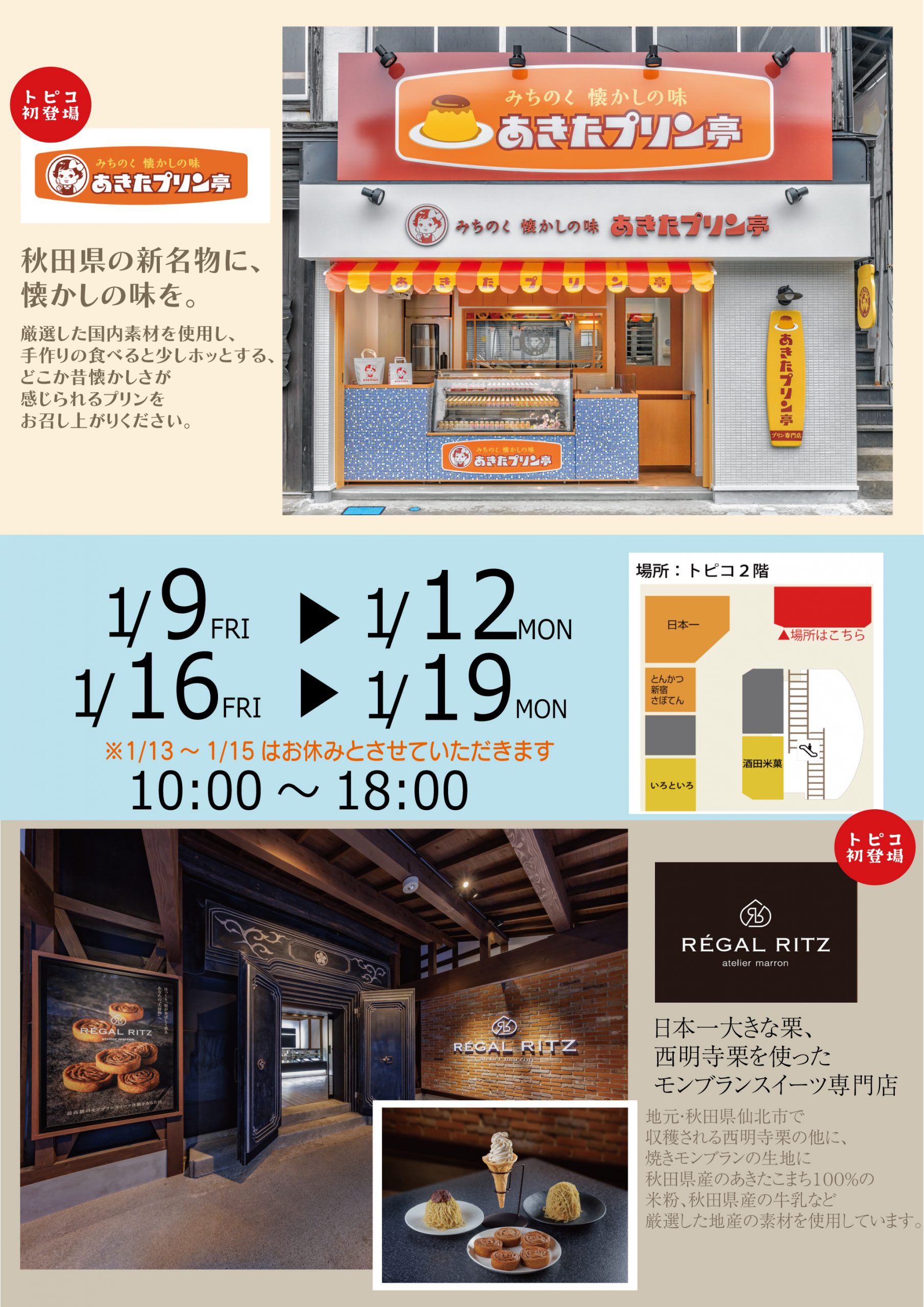 1/9㈮~1/19㈪期間限定OPEN!『RÉGALRITZ・あきたプリン亭』