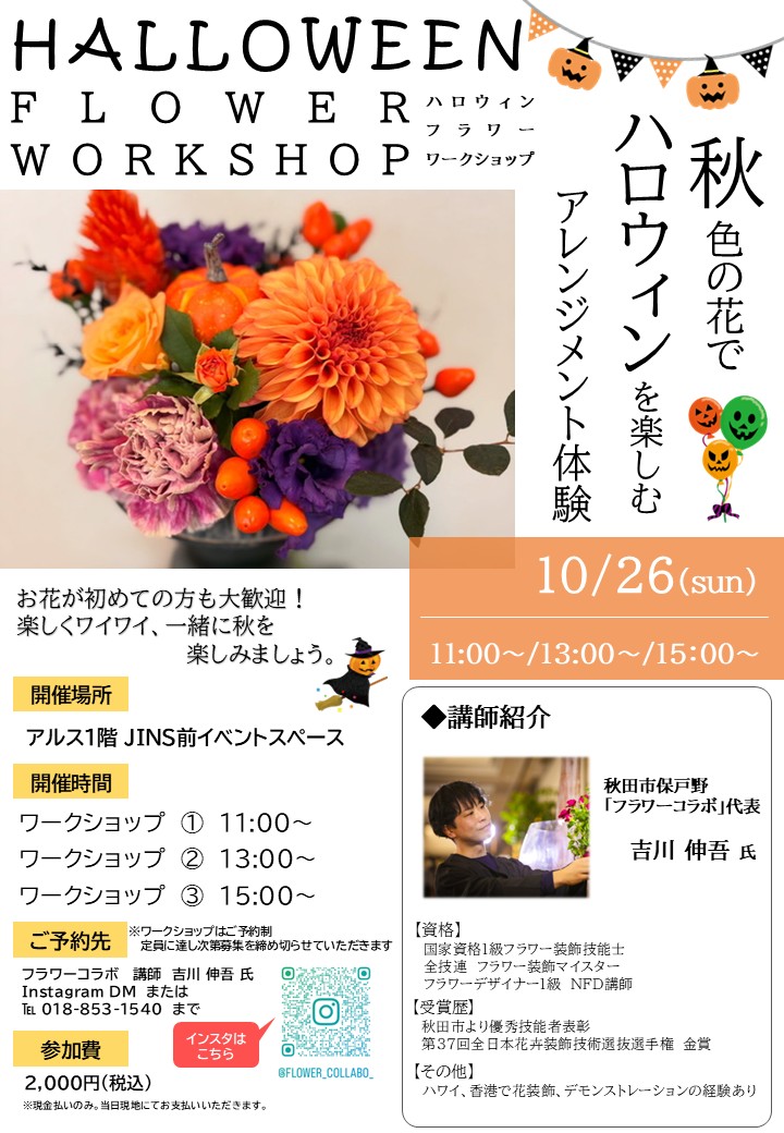 10/26㈰ハロウィンフラワーワークショップ開催🎃