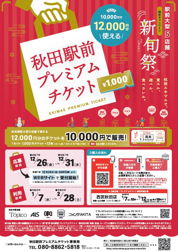詳しくはこちら▶新旬祭 秋田駅前プレミアムチケット※外部サイトに接続します